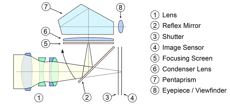 Take a look at the following image of an SLR cross section (image courtesy of Google):